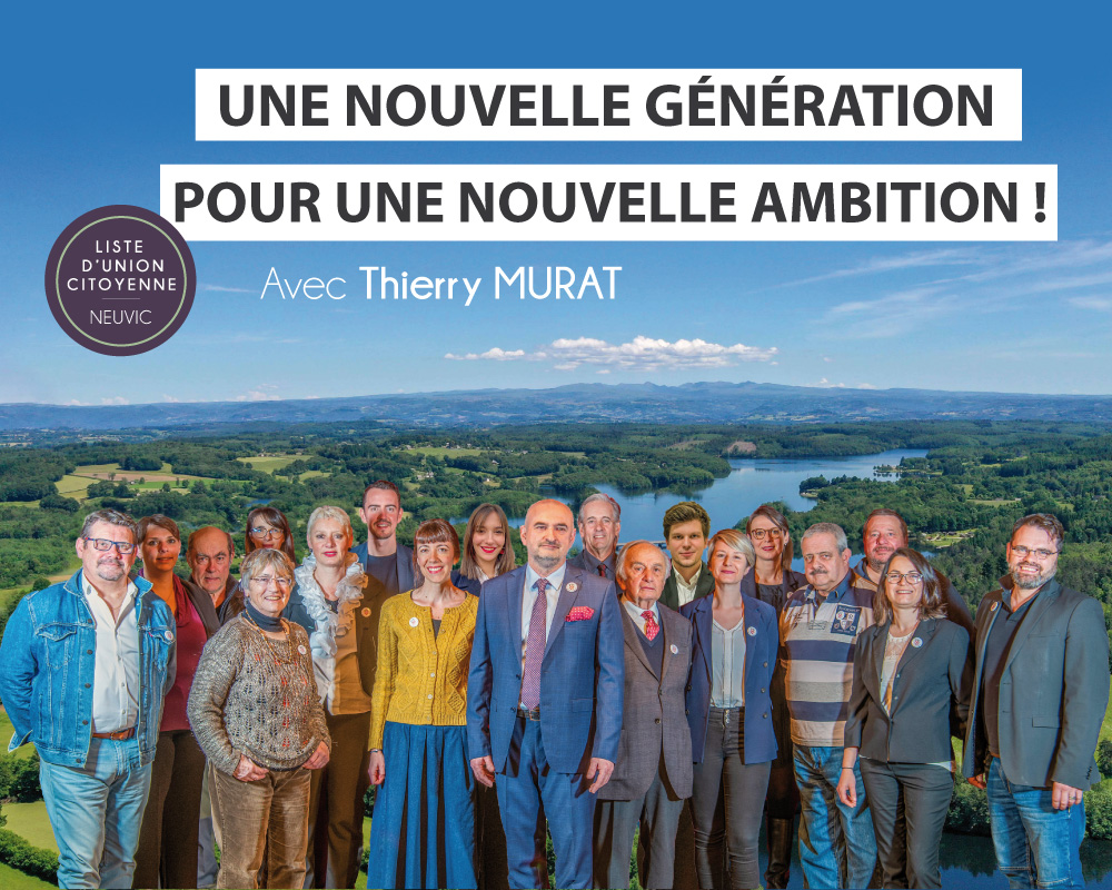 En juillet dernier, cette équipe aux compétences, aux expériences et aux expertises nouvelles a annoncé sa candidature par une lettre publique adressée à chacun des habitants. Une nouvelle dynamique et une volonté révélatrice de l’arrivée d’une nouvelle génération : elle vient donner un nouveau souffle à NEUVIC, en Corrèze. UNE NOUVELLE GÉNÉRATION POUR UNE NOUVELLE AMBITION !